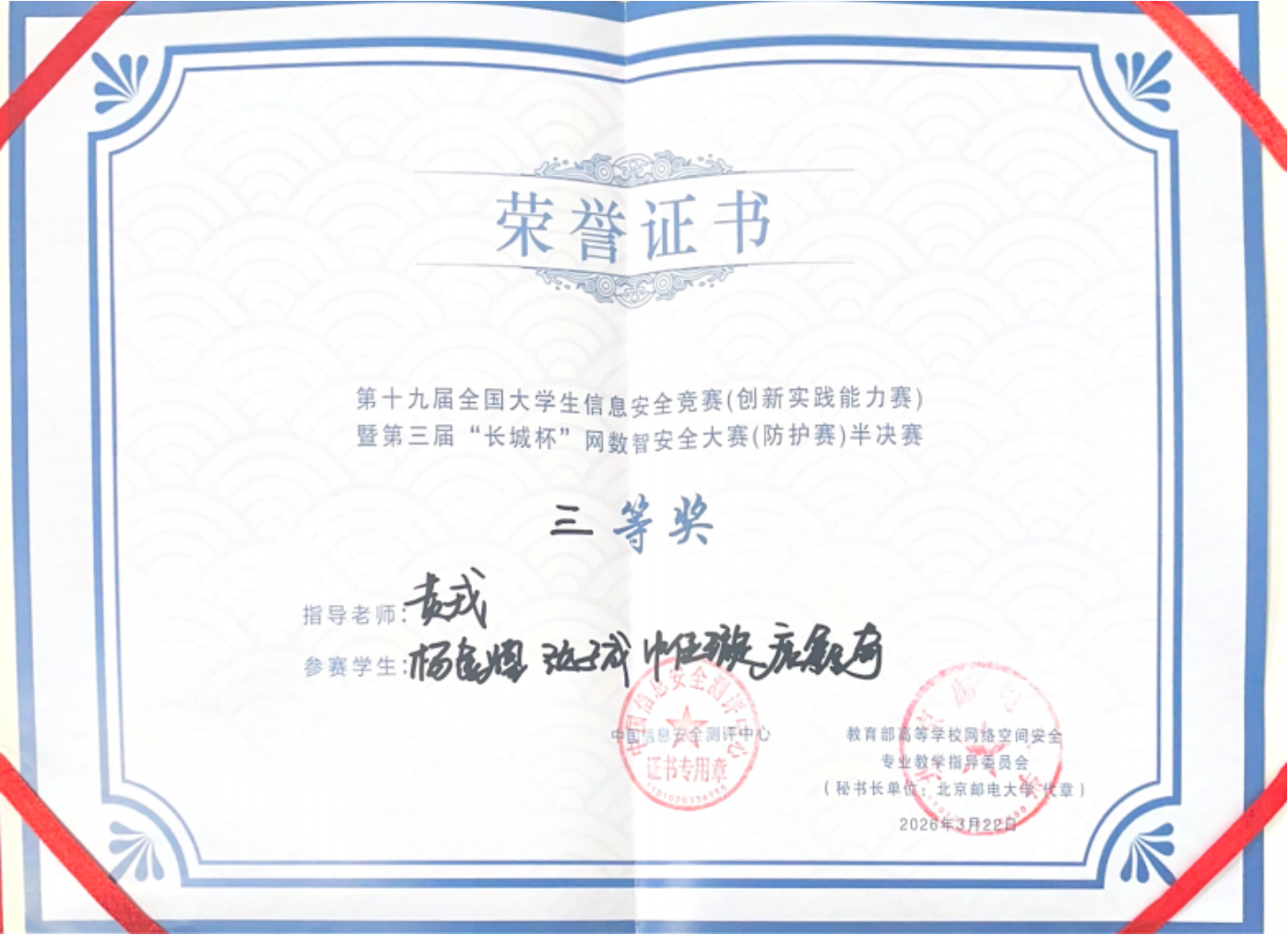 近日,第十九届全国大学生信息安全竞赛(创新实践能力赛)暨第三届“长城杯”网数智安全大赛(防护赛)半决赛(辽宁赛区)落下帷幕。本届赛事共吸引全国804所高校、4150支队伍、万余名师生参赛,规模创历届新高。肉视频 肉视频 1nfoNCE战队在指导老师黄戎带领下,队员杨金煌、申佳璇、汝子成、康鑫奇协同作战,荣获省级三等奖。